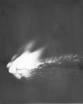 Au fond de son jardin, Didier me présente son ancienne écurie. Je découvre une fenêtre brisée, un accident qu’il n’a jamais réparé. Je transforme ce trou en sténopé, pour ne réaliser des photographies qu'à travers cette ouverture. C’est en occultant la fenêtre et en ne laissant de la lumière passer qu’à travers cette fissure, que le paysage extérieur se projette à l’intérieur. Dans cet espace sombre et poussiéreux, j’installe mon laboratoire et je capte directement sur le papier, des fragments de jardin.