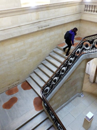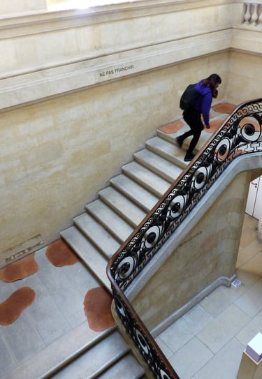 Comme des images du temps qui passe, les plaques d’argile, sont comme des supports à la vie d’une feuille, à la fois origine de notre monde, fragile, vulnérable et pourtant capable de revenir et de revivre après avoir traversé les mauvaises saisons.* En écho à ce cycle naturel des saisons, l’installation est activée par le passage des visiteurs qui briseront pas à pas les plaques. Les empreintes de feuille deviendront poussière. Quant à l’argile, celle-ci pourra être réutilisée pour rebâtir de nouvelles formes et s’inscrire dans un cycle. La notre propre perception du monde et de son origine.