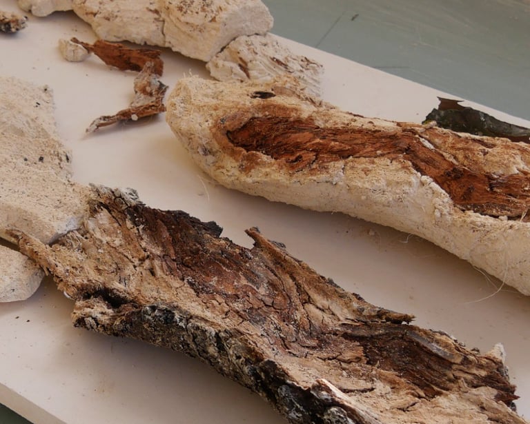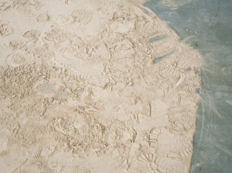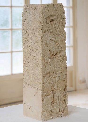 L’action de creuser le sol m’évoque le geste de l’archéologue qui déterre les vestiges du passé pour comprendre l’épaisseur du temps. Comme une archéologue qui reconstitue des objets à partir de débris, j’ai voulu travailler avec les résidus de la matière, la poussière de pierre, afin de redonner une forme à ce matériau sédimenté. Modeler la poussière, dessiner des empreintes et des volumes ; pour inscrire la matière dans un cycle de fabrication. Les recherches menées sein de la résidence se sont faites autour d’une réflexion sur le cycle de la matière à l’image du vivant.