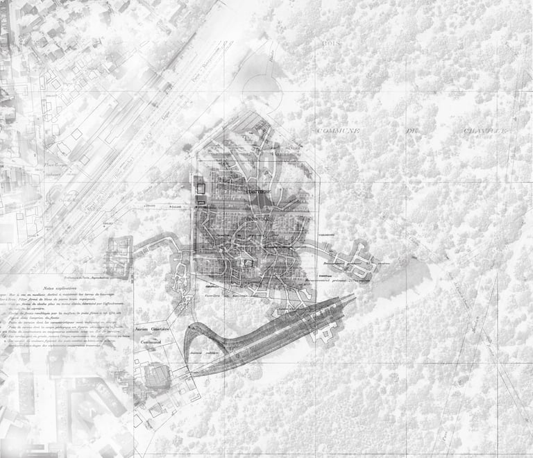 Une enquête photographies qui mêle archives et photographie qui s'est déroulée sur le territoire de Chaville, proche de Versailles. Plus précisément, j'ai adopté un point de vue de pierre. J'ai cheminé sur le sujet d'une carrière souterraine dont on a très peu de trace et sur laquelle un cimetière a pris place au coeur de l'emblématique forêt de Meudon. En revanche, des fonds de cartes postales nous racontent la vie des habitants de cette forêts autrefois et leur mode de recueillement.
